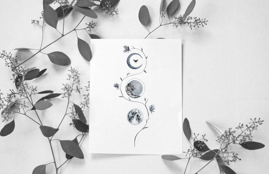 I have a wide range of canvas options available for custom art, from natural wood pieces, to freestanding wooden moons.