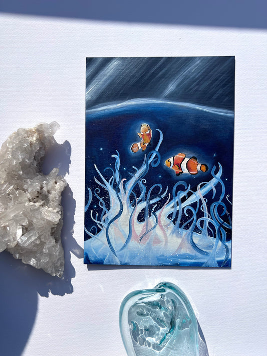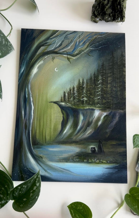 I have a wide range of canvas options available for custom art, from natural wood pieces, to freestanding wooden moons.